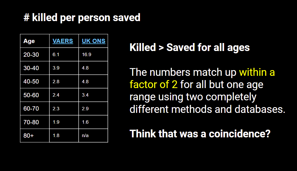 So I did it using the VAERS data and the UK ONS data and here’s what I found: