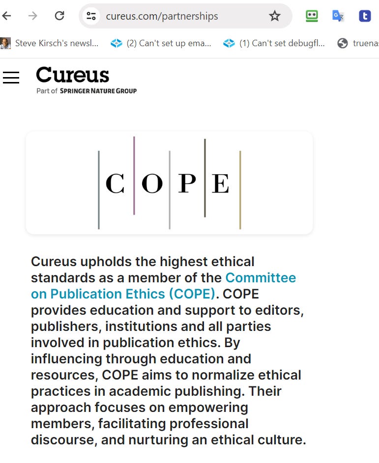Our paper, “Lessons Learned” was retracted by Cureus not because of scientific merit in accordance with the COPE guidelines, but because the editors received 6 ad hominem attack letters and decided we were “anti-vaxxers” and then the journal editors looked for excuses to retract the paper. The excuses were all without scientific merit and one of them was glaringly obvious to everyone (the ridiculous claim that the COVID vaccines were thoroughly tested). The stated reasons don’t rise to the COPE standard. This was a sham retraction that injures our reputations and breaches the implied contract that the journal follows the COPE guidelines. This was arguably the most read paper the journal has ever published, and THE JOURNAL DID NOT RECEIVE A SINGLE COMPLAINT FROM ANY QUALIFIED SCIENTIST on any SCIENTIFIC errors in the article. The peer reviewers are furious and members of the scientific community have written letters in protest of the sham retraction. And when the editors gave us their sham list of reasons and we responded, within hours, they notified us that the paper would be retracted; clearly ignoring our response to their objections. That is NOT how science works. This is again unethical. It shows they made up their minds and it didn’t matter what we said.