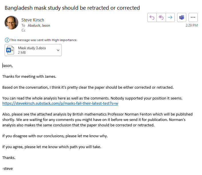 Just for the public record, I sent this email today to Yale economics professor Jason Abaluck, the corresponding author of the Bangladesh mask study paper.