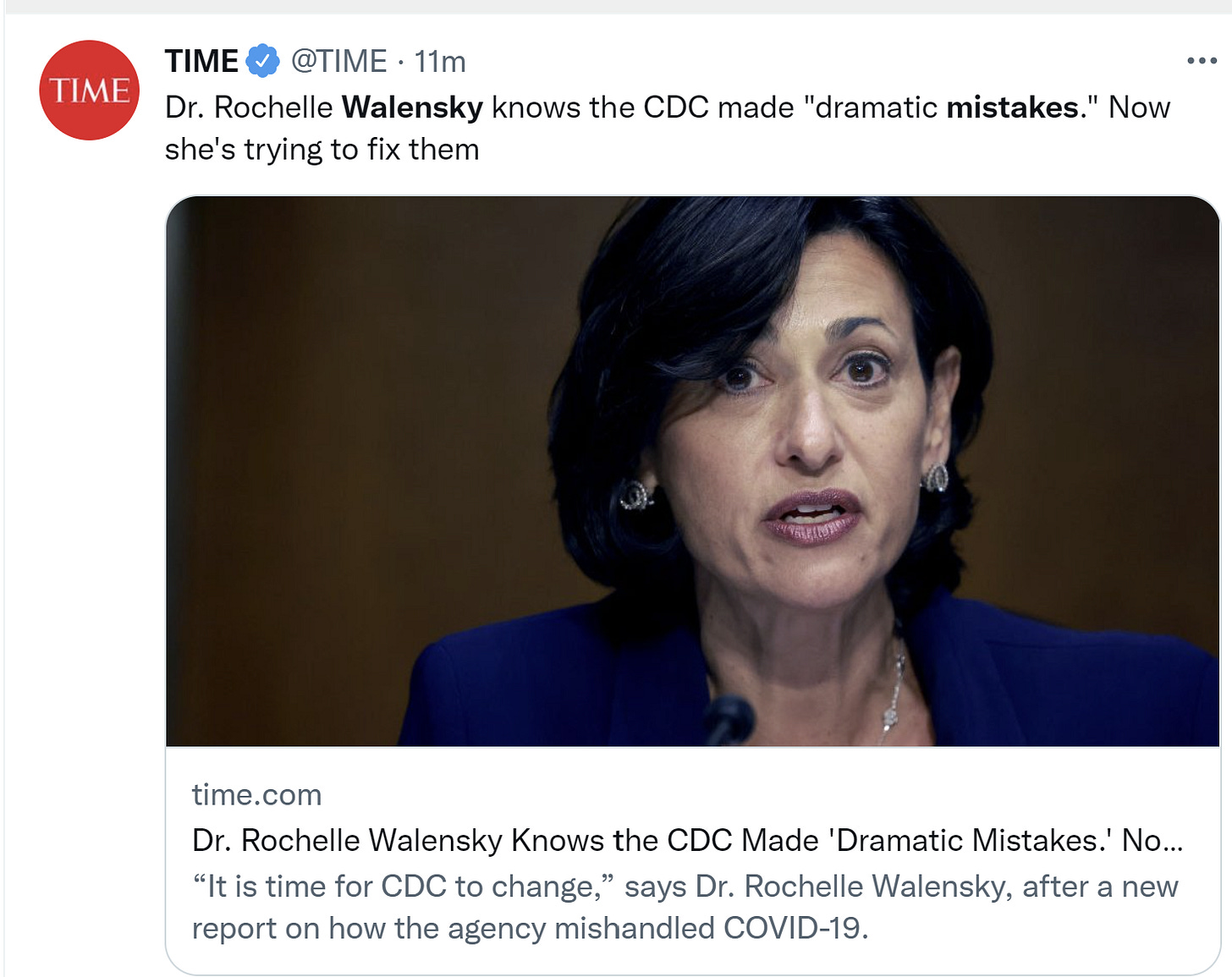 "We've made some mistakes, but NOW you can trust us!" -- Dr. Rochelle Walensky