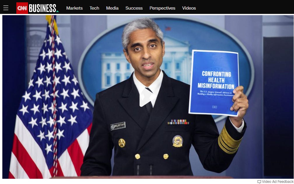 US Surgeon General Vivek Murthy promotes a list of people who should be censored because he can’t win a debate with any of them. Is that how science works??