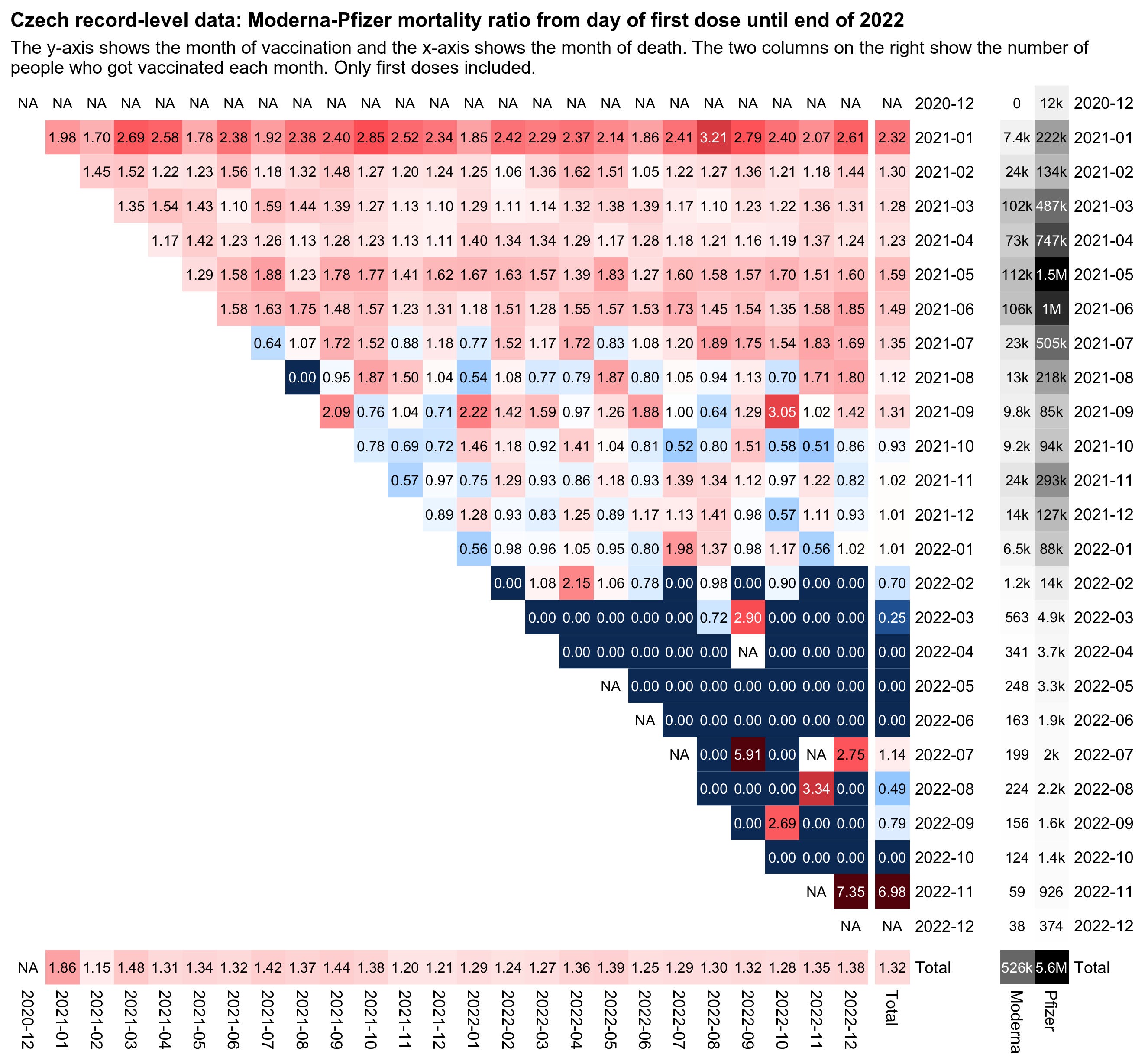 For example, the comorbidity ratio varied by a huge amount in the months where the most vaccines were rolled out, but the triangle plot shows the MRR’s were always at unacceptable levels of safety including when the comorbidities favored Moderna. In fact the MRR was the highest when the comorbidity ratio was the lowest (in Jan) which of course is opposite to their hypothesis.