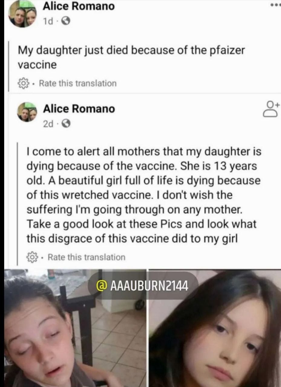 I’m not getting any more shots. My wife isn’t either. But two of our kids are still convinced that the vaccines are safe and effective. Their argument is typical, “Dad, none of my friends have died from the vaccine.” They are both adults and I can’t change their minds. Not only that, they are being forced to take the booster by their schools (Harvard and University of Rochester). They could end up dead or disabled.