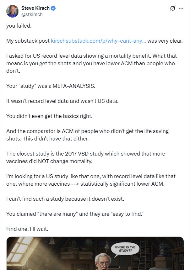 The entire US childhood vaccination schedule is based on the belief that it will save lives, not actually data. There aren’t any studies using record-level US data showing a mortality benefit from mass vaccination in the US. Not a single one.