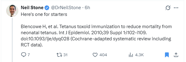 Neil offered a meta analysis of tetanus shots given OUTSIDE the US as the single best study to justify mass vaccinating kids in the US!!!