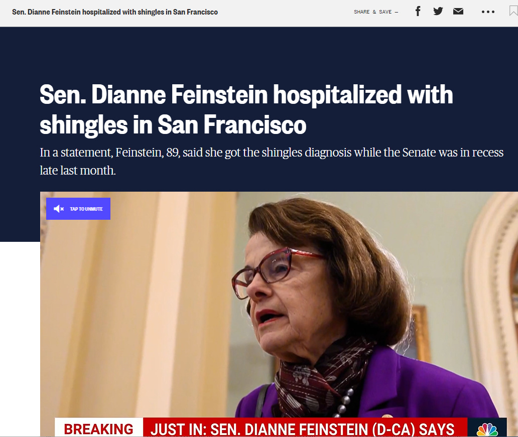 Why is US Senator Diane Feinstein hiding her medical history w.r.t. shingles?